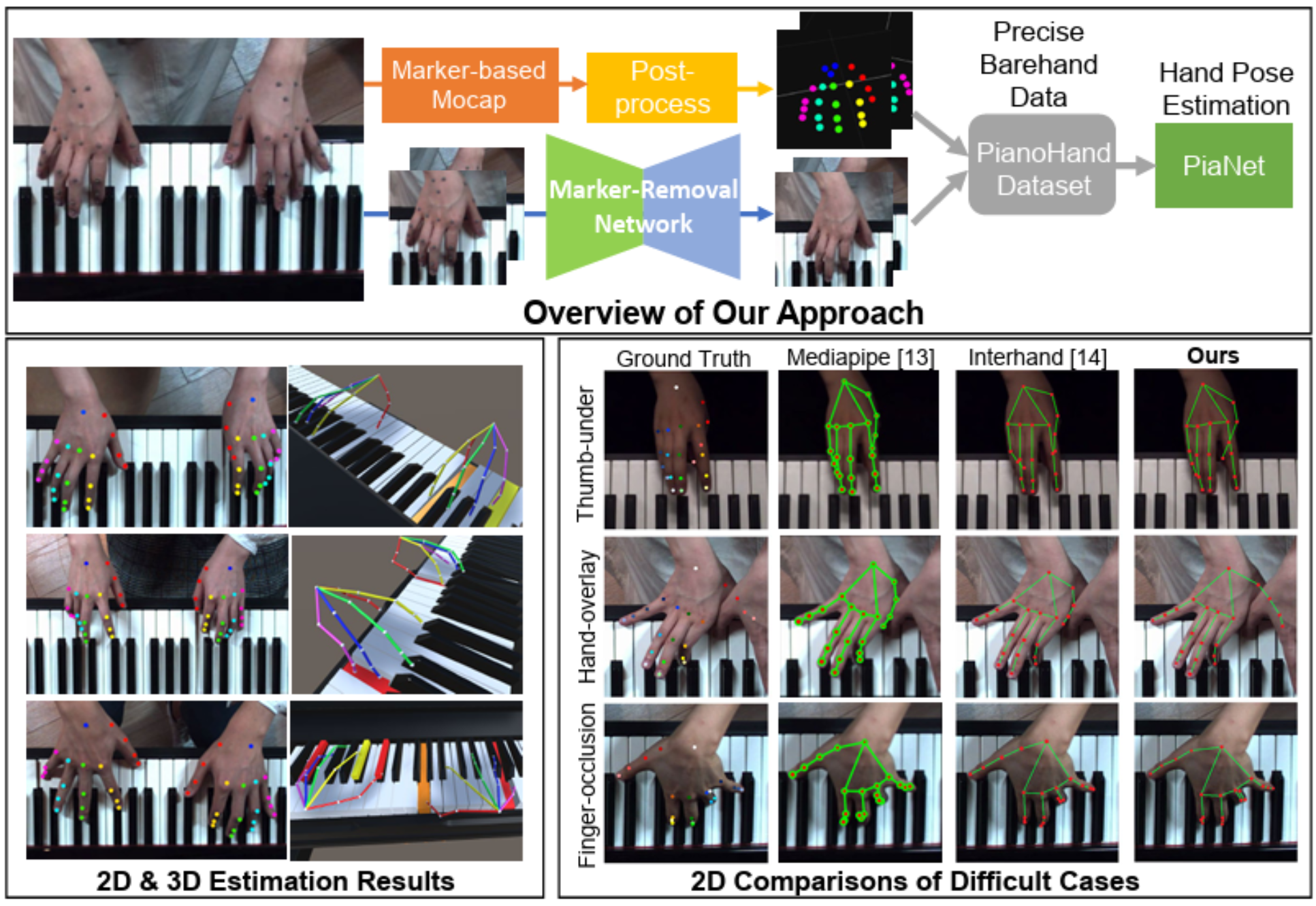 Marker-removal Networks to Collect Precise 3D Hand Data for RGB-based Estimation and its Application in Piano